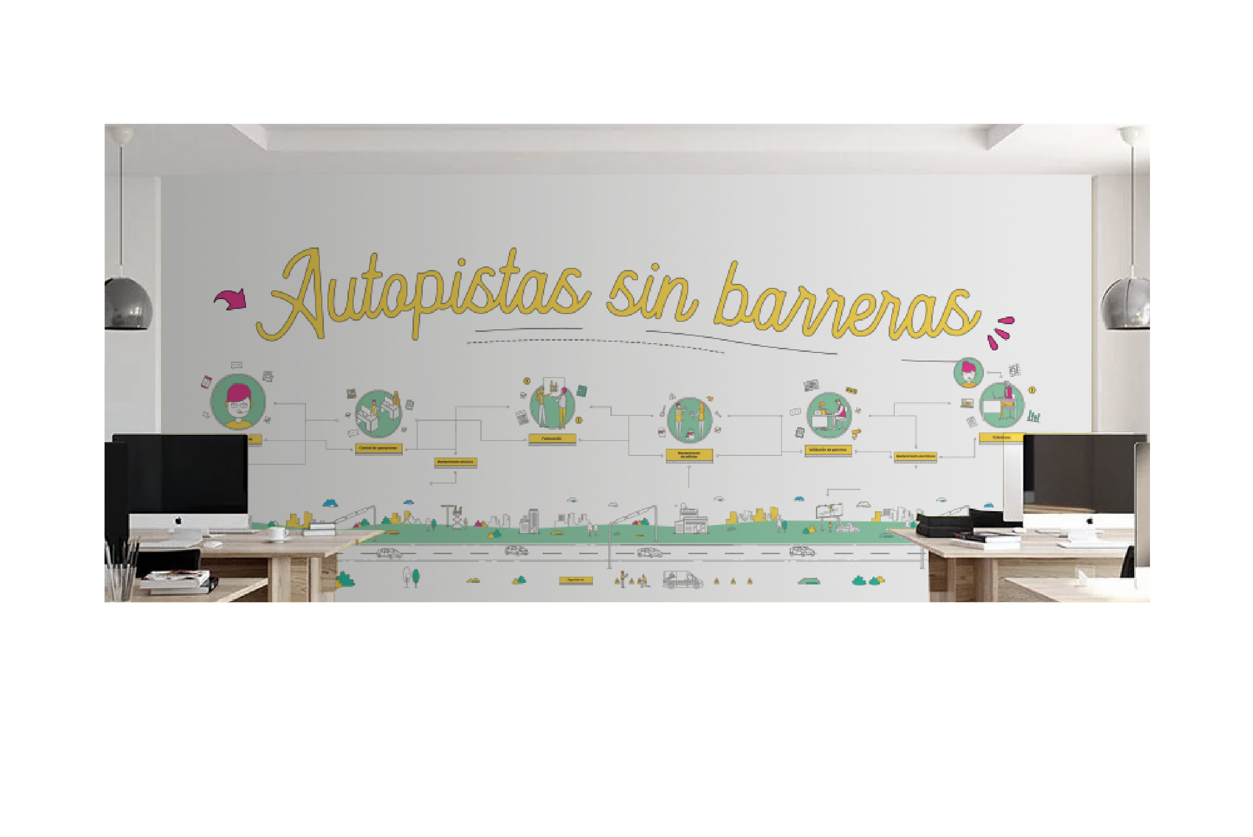 Junto con el equipo de recursos humanos de AUSA diseñamos un mural para su nuevo espacio de trabajo.